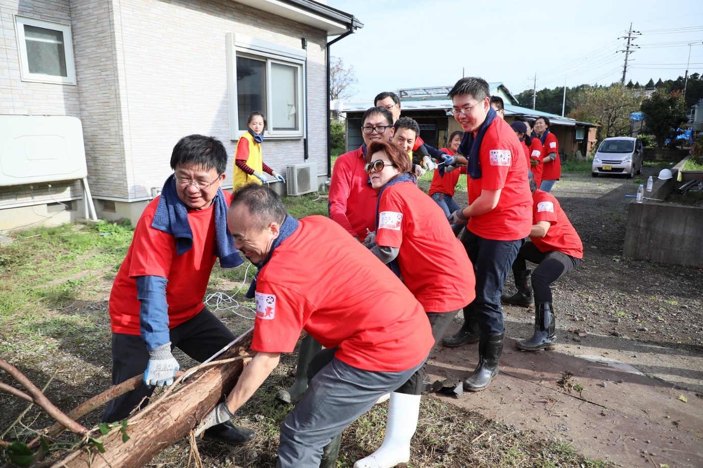 同日のボランティア活動で、東京支店のボランティア行員は、被災者を手伝い、吹き飛ばされた屋根や梁、あちこちに飛び散った瓦やガラスの破片、各種ゴミを含む被災家屋の片づけを行い、可燃ごみと燃えないゴミに整理・分類した。また、台風の暴風でなぎ倒された樹木を片づけ、被災者の田畑を片付け、被災者が農業生産を再開できるよう手伝った。(編集KM)